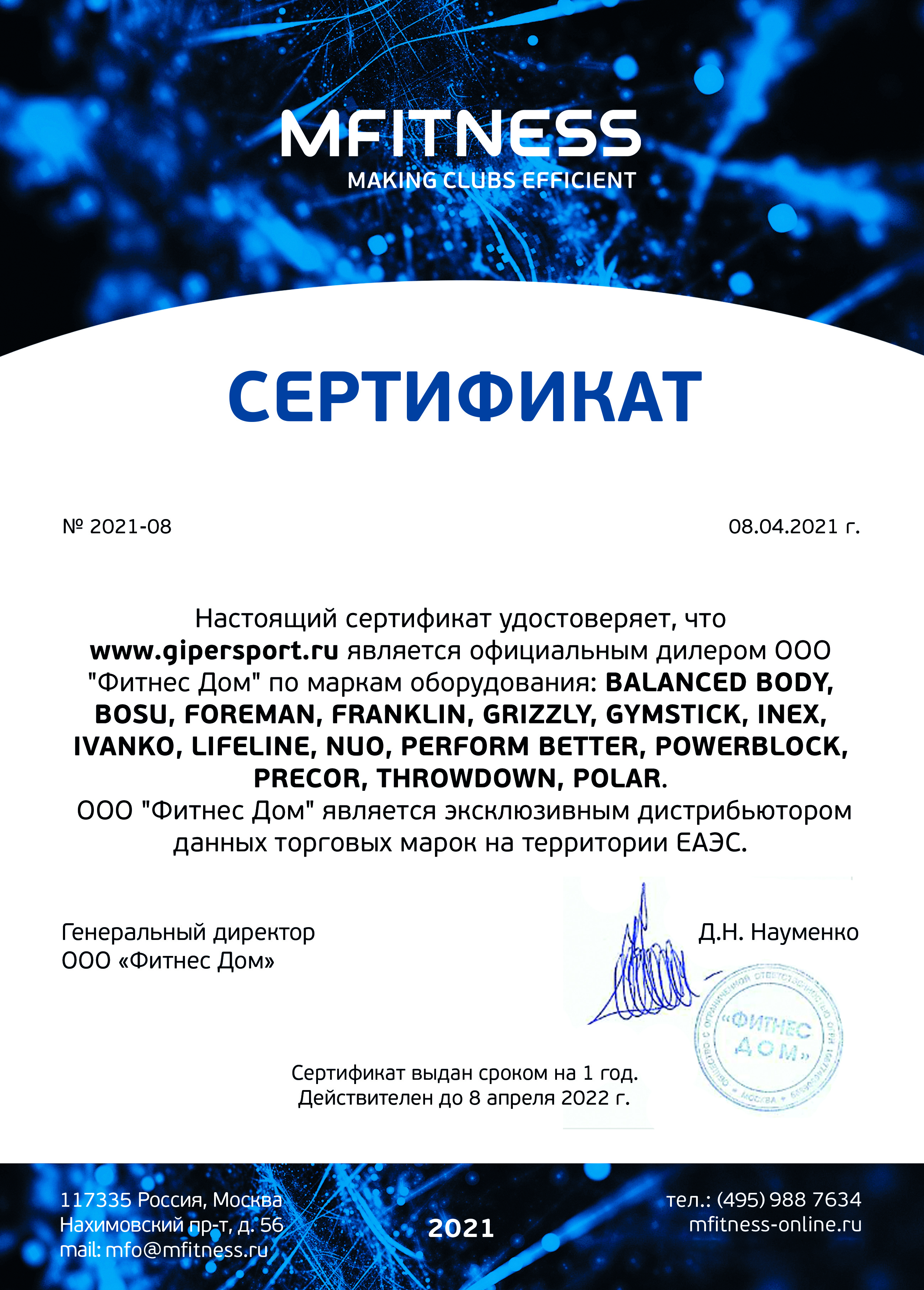 На этой странице нашего сайта вы можете ознакомиться с документами, подтверждающими наше право реализовывать подлинную продукцию ведущих производителей тренажеров. Наши свидетельства официального дистрибьютора продукции Matrix, Vision, Oxygen Fitness, Horizon Fitness, Body Solid, AppleGate и др. станут дополнительной гарантией того, что вы приобретете именно тот товар, о котором мечтали.